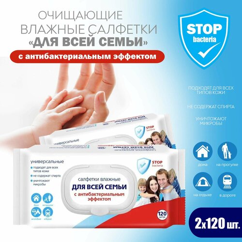 Салфетки влажные "Для всей семьи" с антибактериальным эффектом, с клапаном, 2 уп. по 120 шт. 102355061751