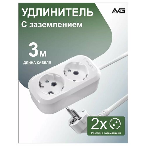 Удлинитель с заземлением 3 метра 2 розетки