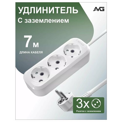 Удлинитель с заземлением 7 метра 3 розетки