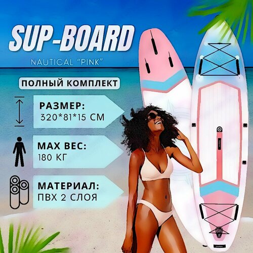 Sup доска Nautical Розовая надувная 320 см с полным комплектом для плавания / Сапборд с веслом и лишем для серфинга 320*81*15 см