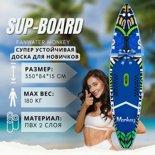 Надувной Sup board 335 см с полным комплектом для плавания с веслом и лишем / Сап доска для серфинга 335*84*15 см FunWater Monkey 11"