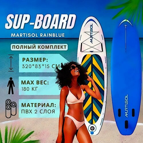Sup доска надувная Murtisol Blue для серфинга с веслом и лишем / Cапборд 320*83*15 см с полным комплектом