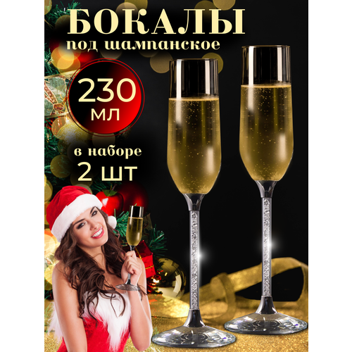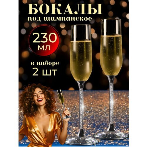 Фужеры для шампанского со стразами в ножке набор бокалов флюте 2 шт, 230 мл