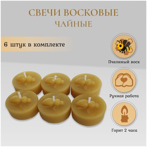 Свечи чайные "Пчёлки" | Восковые | 6 штук