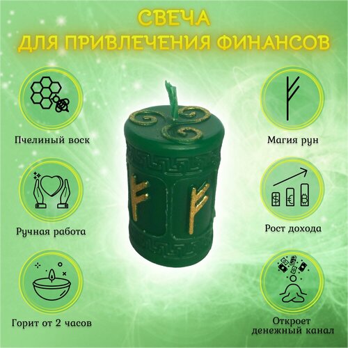 Свеча для привлечения финансов | восковая | рунная | зеленая