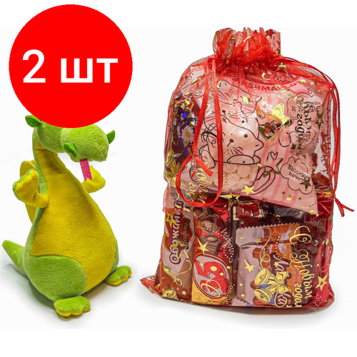 Комплект 2 штук, Новогодний сладкий подарок Рюкзак с кулиской Дракон, 1000г, КА-08