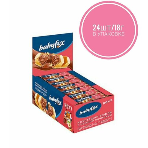 Вафельный батончик BabyFox ROXY в молочном шоколаде с шоколадно-ореховой начинкой на основе фундучной пасты с добавлением какао, 6*18 гр.
