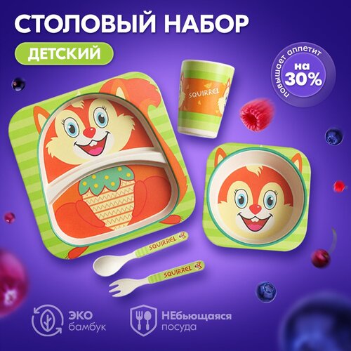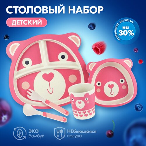 Детский столовый набор, тарелка, миска, ложка, вилка, стакан, 27х25х10 см, Baby Fox BF-BOWL-44