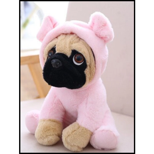 Мягкая игрушка собака Мопс в костюме поросенка, розовая, 20х15х12 см
