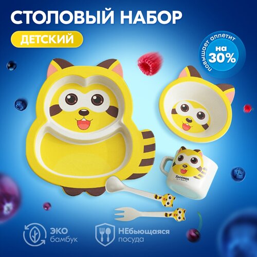 Детский столовый набор, тарелка, миска, ложка, вилка, кружка, 28,2х29х10,5 см, Baby Fox BF-BOWL-54