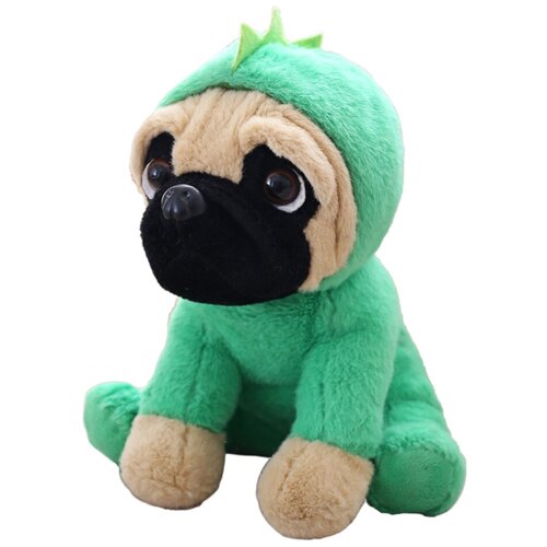 Мягкая игрушка собака Мопс в костюме динозаврика, зеленая, 20х15х12 см