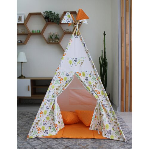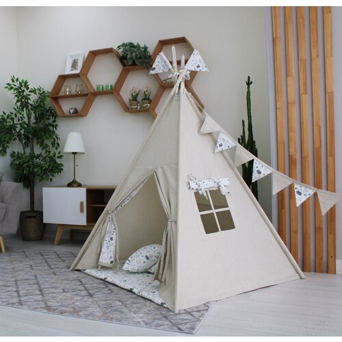 Вигвам Baby-suit Лесная вечеринка, с окошком, ковриком, подушками, флажками, гирляндой и системой антискладывания (полный комплект)