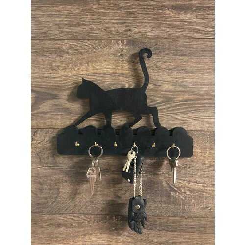 Ключница настенная, Полка интерьерная с крючками Кошка . 1 шт