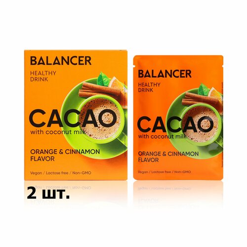 Какао Balancer Cacao на кокосовом молоке со вкусом «Апельсин и корица» 2 уп.