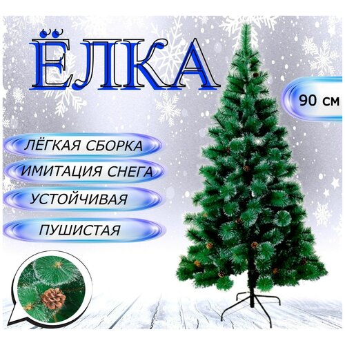 Искусственная елка (сосна с инеем и шишками), новогодняя ёлка, 90 см