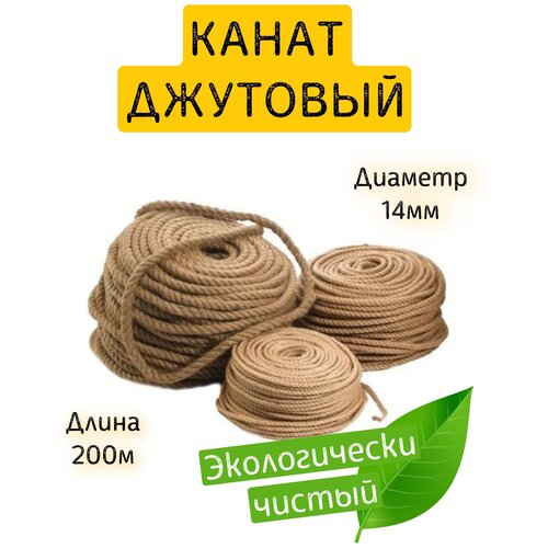 Канат джутовый 14мм. Бухта 200м.