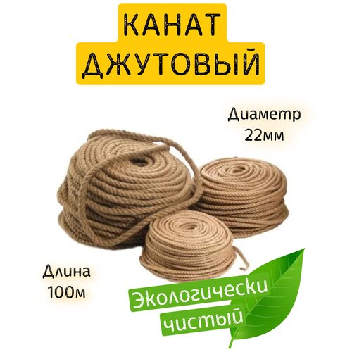 Канат джутовый 22мм. Бухта 100м.