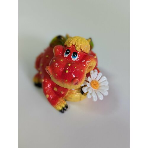 Фигурка символ года декоративная сувенир "Дракончик-мальчик с цветочком" (Красный) L7.5W6H6