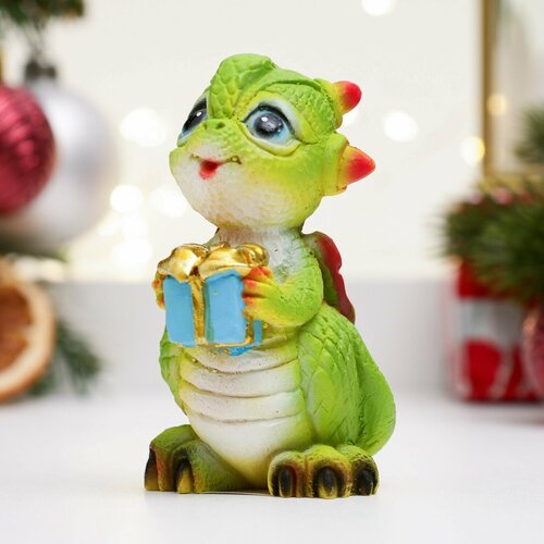 Фигурка символ года декоративная новогодняя "Дракончик с подарком" сувенир L5.5W5H7.5