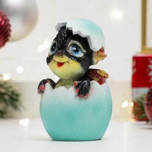 Фигура символ года 2024 сувенирная новогодняя "Дракошка в яичке" (черный-синий)