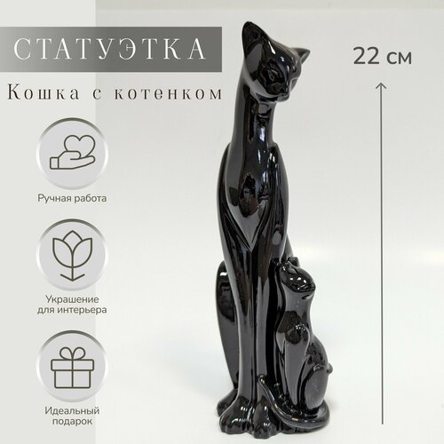 Фигура декоративная Кошка с котенком (черный глянец)