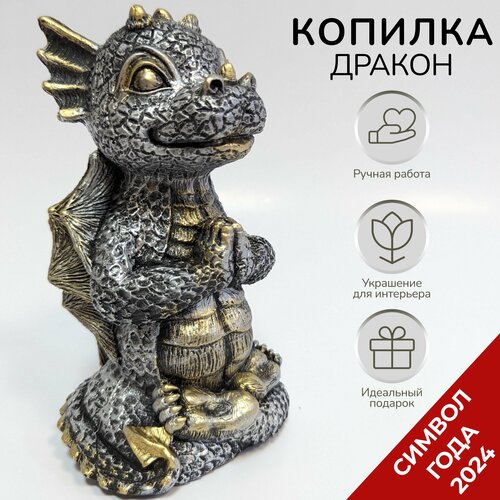 Копилка интерьерная сувенир символ 2024 года "Дракончик с рублем"