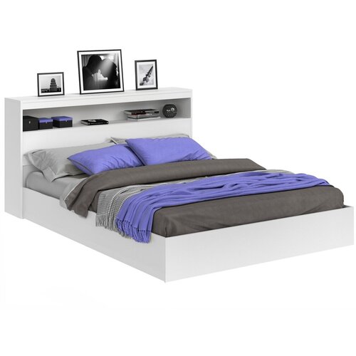 Кровать с прикроватным блоком Бася сп. м.160х200см (настил ДСП), Белый матовый