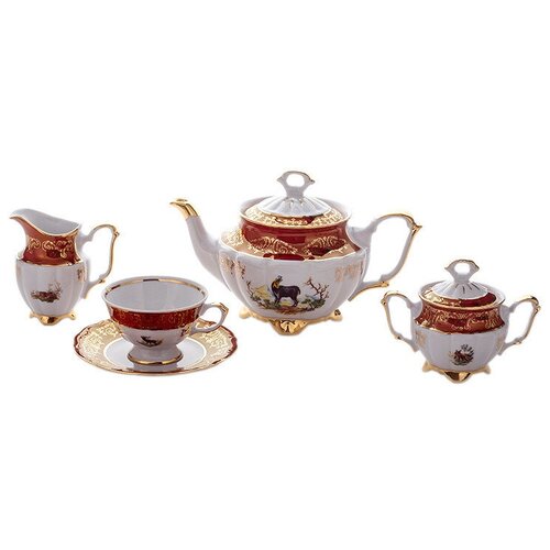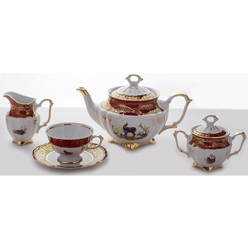 Чайный сервиз на 6 персон 15 предметов Bavarian Porcelain "Мария-Тереза /Охота красная" / 012195