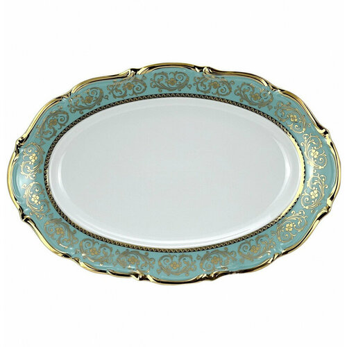 Блюдо 33 см овальное Bavarian Porcelain "Мария-Тереза /Цветочная роспись /Бирюза" / 273886