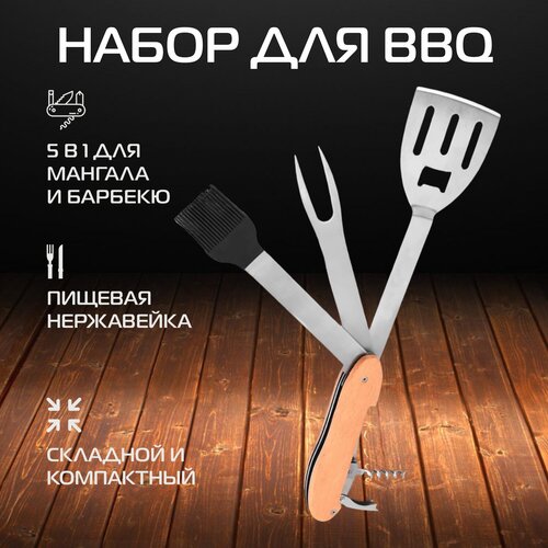 Набор для пикника и барбекю KOLUNDROV складной: лопатка, вилка, кисточка, штопор, подарочный набор инструментов для мангала и гриля