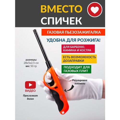 Газовая пьезозажигалка для поджига газовых конфорок на кухне, камина, костра для BBQ
