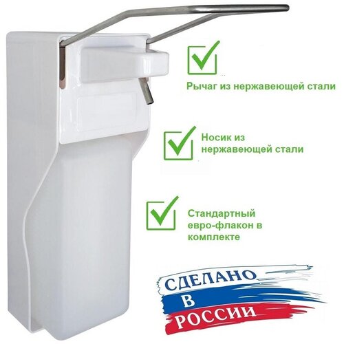 Локтевой дозатор для жидкого мыла и дезинфицирующих средств Bio-эконом, еврофлакон 1 литр, рычаг из нержавеющей стали