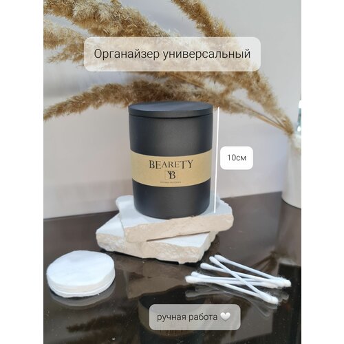 Органайзер черного цвета универсальный, контейнер для ватных палочек и дисков с крышкой, высота 9,5см, BEARETY