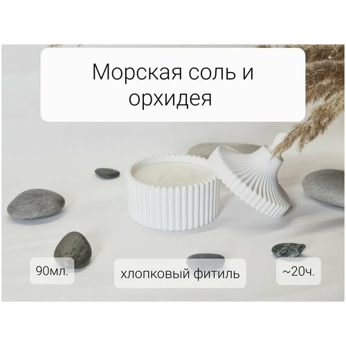 Ароматизированная соевая свеча в шкатулке с ароматом "Морская соль и орхидея" 90мл.