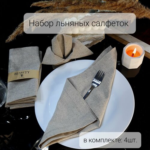 Салфетки льняные для сервировки стола, 33×33см, 4шт, BEARETY