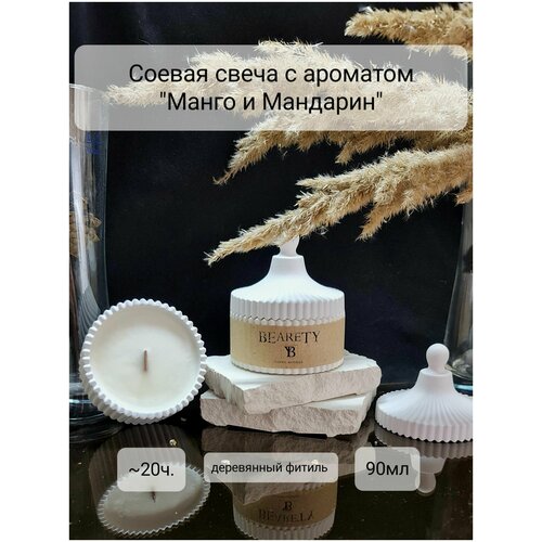 Ароматизированная соевая свеча в шкатулке с ароматом "Манго и мандарин" 90мл, BEARETY