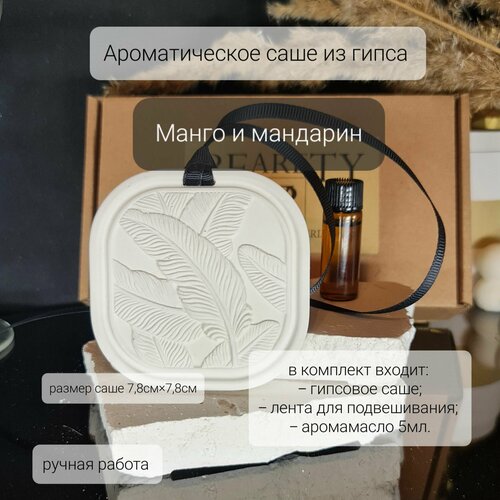 Ароматическое (многоразовое) саше из гипса "Манго и Мандарин", для дома, гардероба, автомобиля, 7,8*7,8см, BEARETY