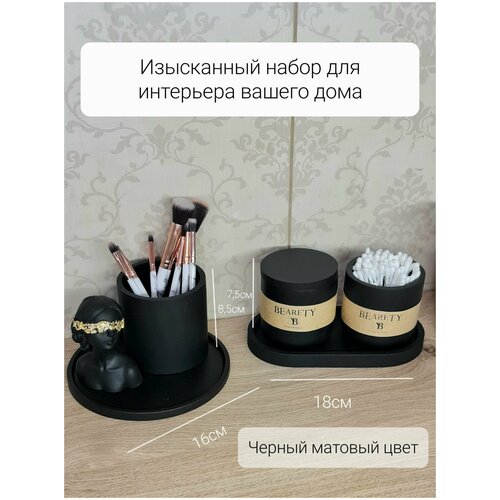 Набор органайзеров для интерьера, черный, для ванной, для ватных палочек, ватных дисков, кисточек, из архитектурного гипса, BEARETY