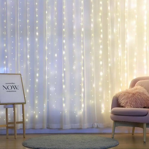 Светодиодная гирлянда-штора 3х3 / занавес / новогоднее украшение 300х300 см, холодный свет