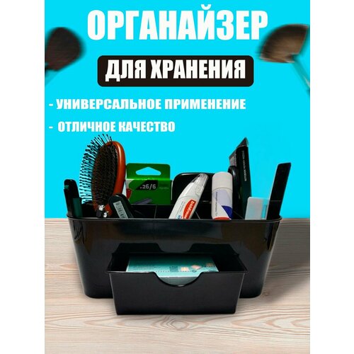 Органайзер универсальный для косметики и канцелярии черный с ящиком