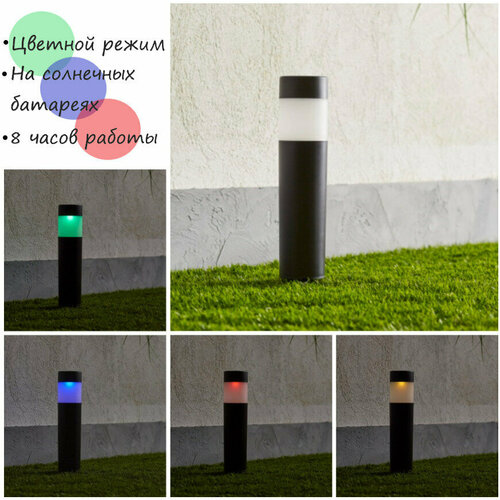 Светильник садовый на солнечных батареях столбик, черный , комплект из 4 штук, многоцветный