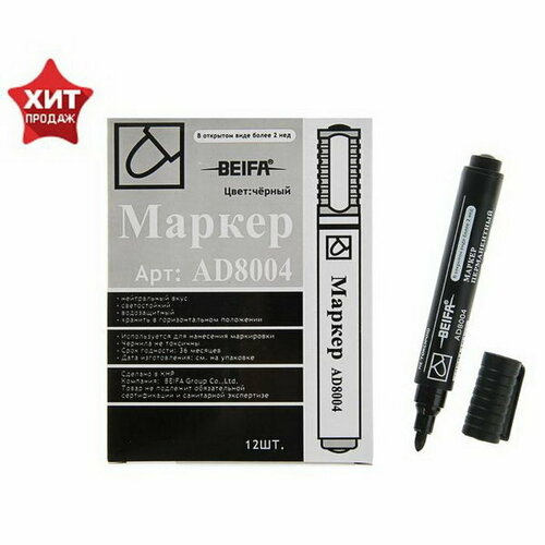 Маркер перманентный (нестираемый) BEIFA (Бэйфа) "A Plus", черный, круглый наконечник, 2.5 мм, PY237800-BK