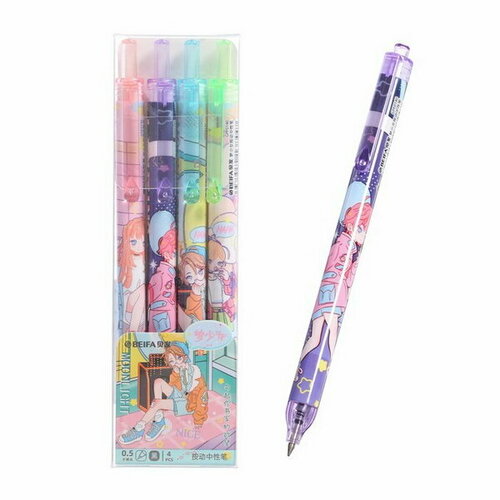 Набор гелевых автоматических ручек 0.5 мм "аниме", чёрный стержень