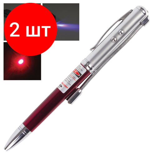Комплект 2 шт, Указка лазерная, радиус 200 м, красный луч, LED-фонарь, стилус, детектор купюр, ручка, TD-RP-36