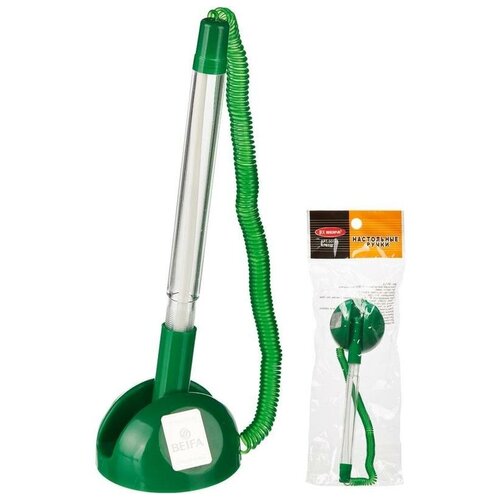 Ручка шариковая на зеленой подставке Beifa синяя на липучке с пружиной (толщина линии 0.5 мм)