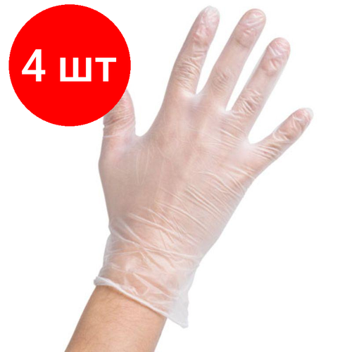 Комплект 4 упаковок, Перчатки виниловые н/с, н/о, прозрачные ( XL ) уп/50пар