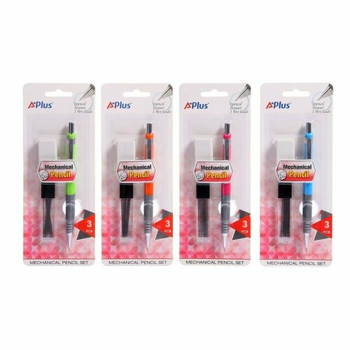 Карандаш механический 0.7 мм BEIFA Премиум Офис, с ластиком, со сменными грифелями, антискользящий корпус, микс