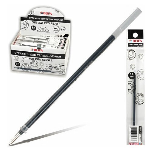 Стержень гелевый BEIFA (Бэйфа) 135 мм черный 0 8 мм линия письма 0 6 мм подвес, 100 шт