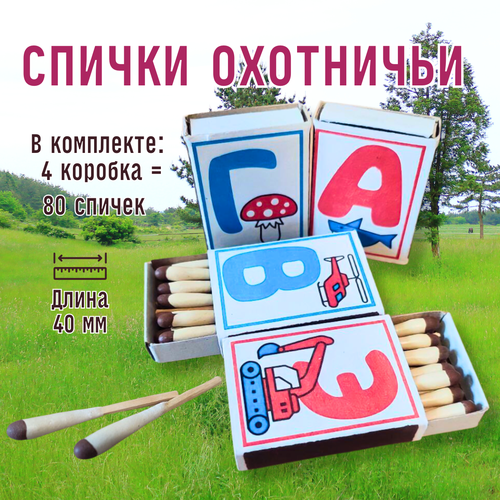 Спички охотничьи 4 коробка 80 штук 40 мм