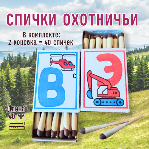 Спички охотничьи 2 коробка 40 штук 40 мм